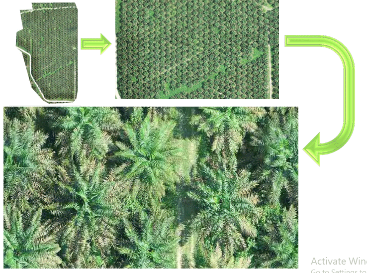 Kami menggunakan kamera dengan resolusi tinggi dan posisi tegak lurus dalam pengambilan foto serta didukung oleh pesawat jenis Fixwing sky walker type x-8 terbaru sehingga menghasilkan foto yang jelas menggambarkan tentang obyek yang ada diareal pemotretan,hal ini memudahkan untuk proses digitasi dan Counting trees (penghitungan pokok sawit) serta penghitungan luasan area kebun